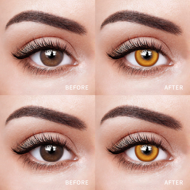 Hair Color: Warm blondes and redheads can choose green, hazel, or light brown lenses to enhance their features. Browns and blacks are flattered by honey, green, or blue lenses.